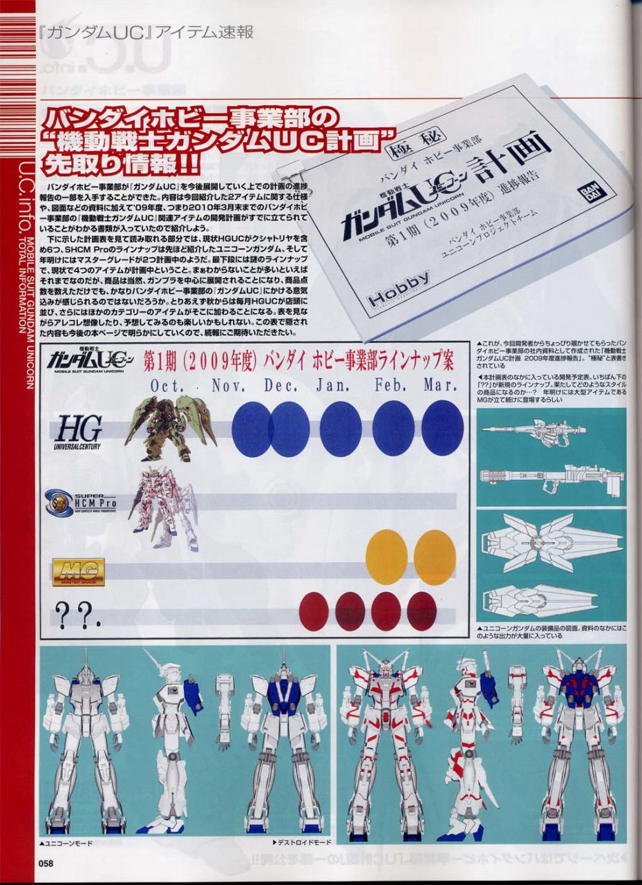 HGUCは月一度のペースで第一弾がクシャトリヤ(10月発売?)で3月までに6個発売。