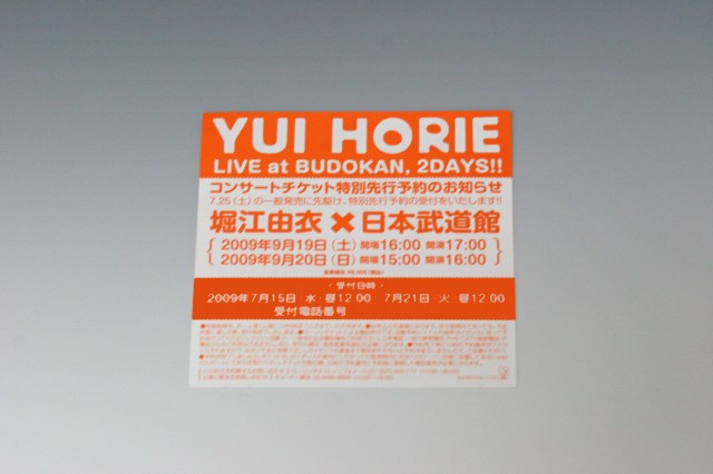 9月開催の武道館ライブチケットの先行発売のチラシも封入。