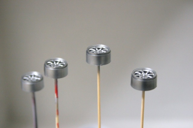 シャーシは以前のダークグレーのまま、ホイールは手持ちのシルバーで塗装しました。