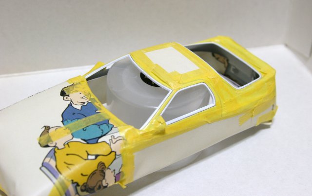 このキットは窓パーツが透明じゃないので内側はマスキング省略。