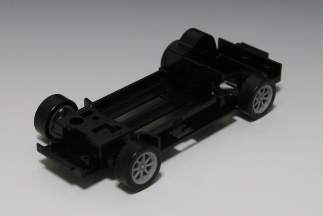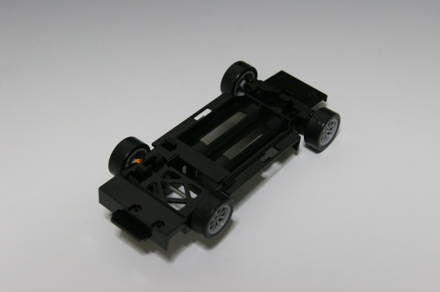 フレーム仮組み。RCカーの流用(?)で電池を入れる箇所があります。シートやハンドルは無し。