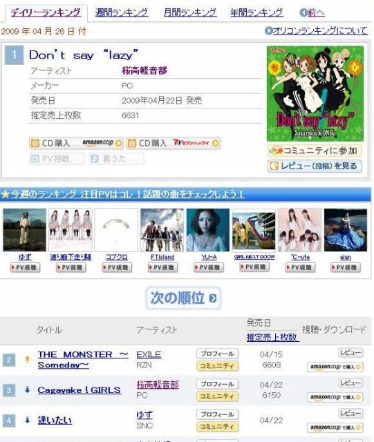 けいおん! ED「Don’t say“lazy”」OP「Cagayake! GIRLS」 デイリー第1位,2位キープ