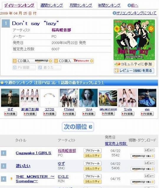 けいおん! ED「Don’t say“lazy”」ついにデイリー第1位に!