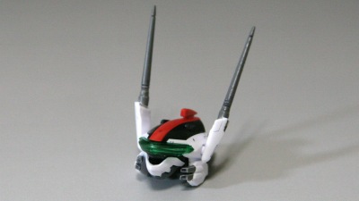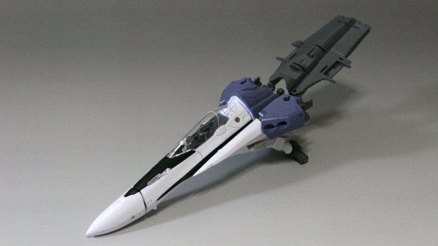 ●背部バックパックは着脱式にし、外した状態で単独飛行形態を差し替え再現。専用パーツ付属。